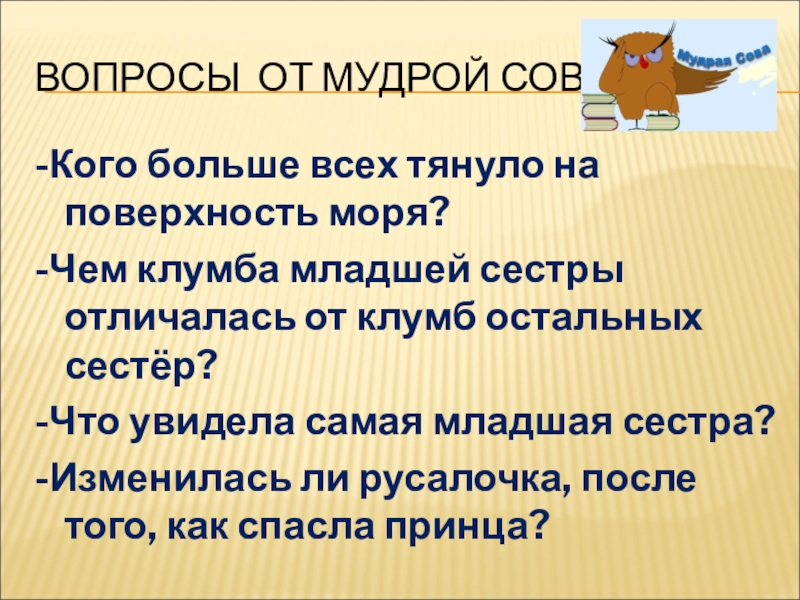 Слайд 39ВОПРОСЫ ОТ МУДРОЙ СОВЫ