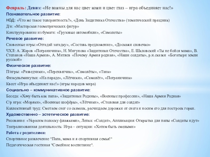 Слайд 7Перспективный план воспитательно – образовательной работы