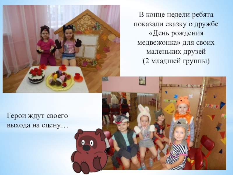 Слайд 33В конце недели ребята показали сказку о дружбе «День рождения медвежонка»