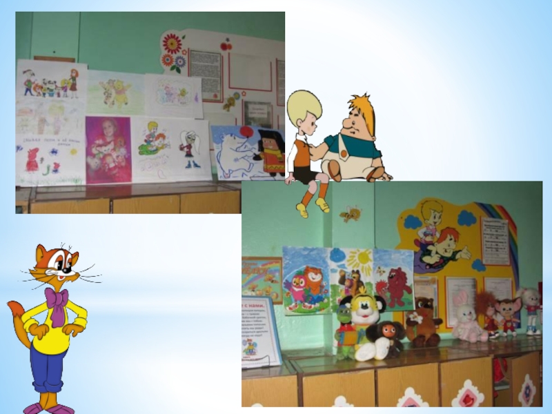 «Дружба мультяшных героев», оформление раздевалки: выставка рисунков, игрушек