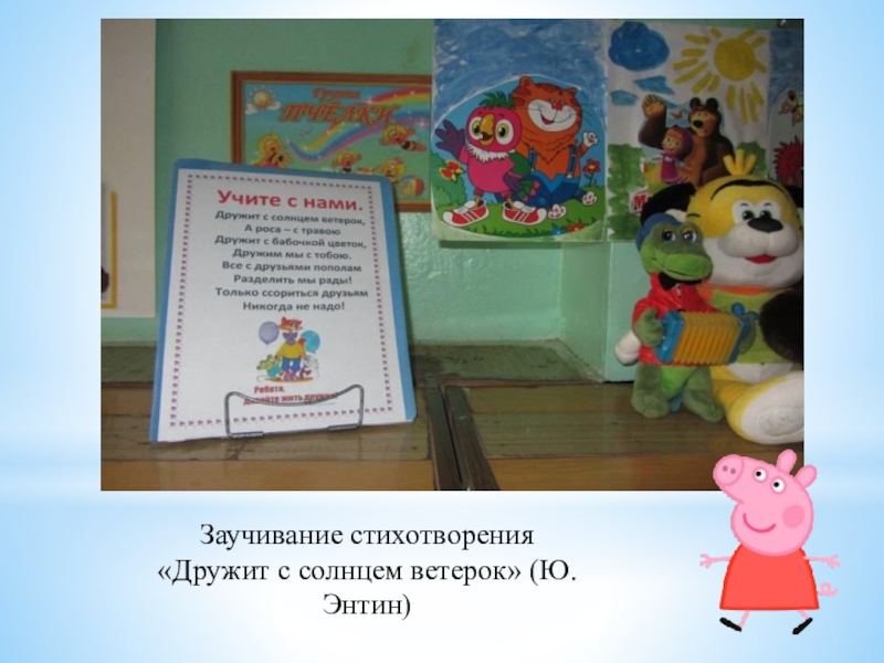 Слайд 31Заучивание стихотворения «Дружит с солнцем ветерок» (Ю.Энтин)