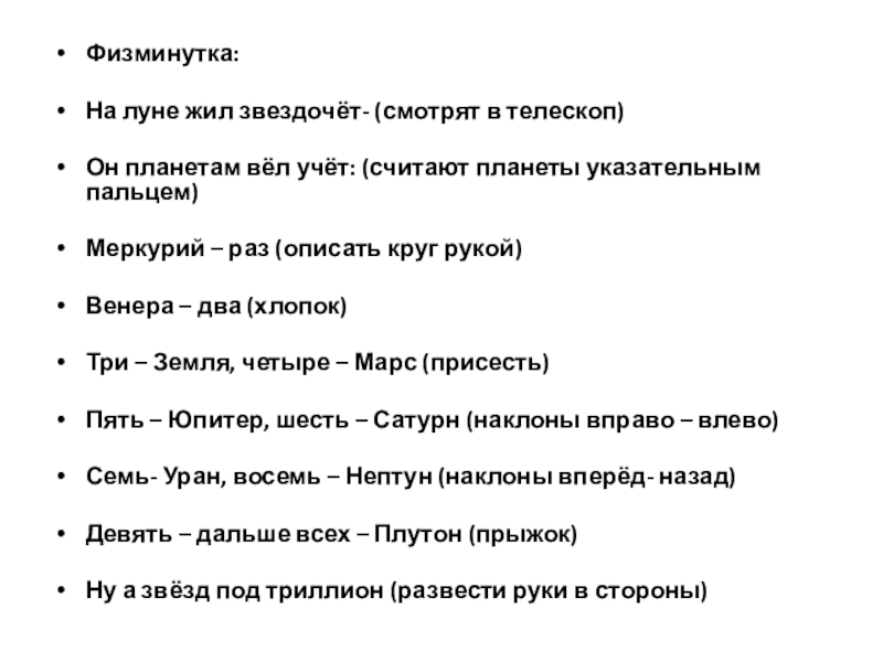 планеты указательным пальцем)