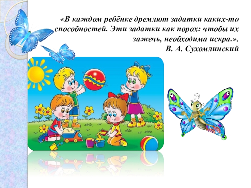 Слайд 3«В каждом ребёнке дремлют задатки каких-то способностей. Эти задатки как порох: