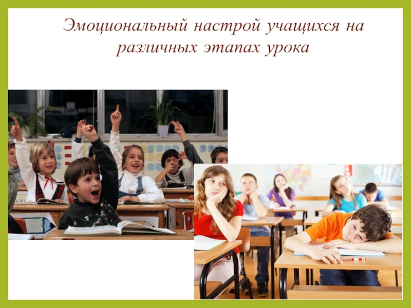 Слайд 15Эмоциональный настрой учащихся на различных этапах урока