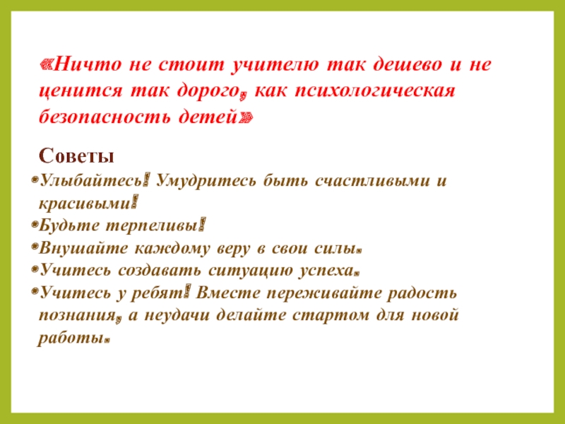 Слайд 38«Ничто не стоит учителю так дешево и не ценится так дорого,