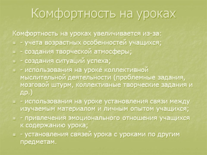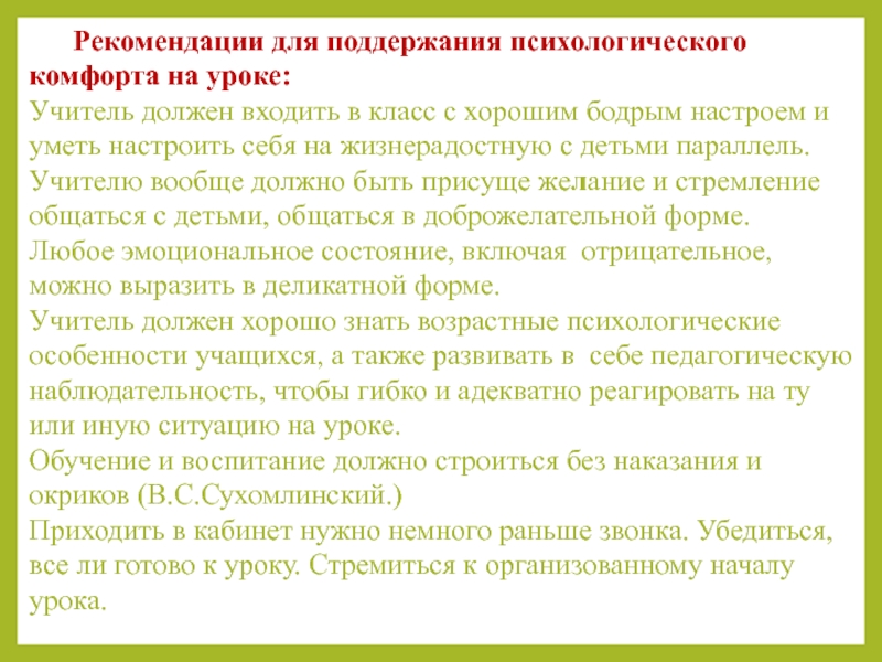 Слайд 7 Рекомендации для поддержания психологического комфорта на уроке: