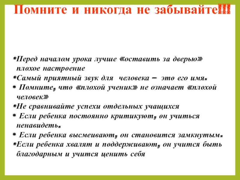 Слайд 39Перед началом урока лучше «оставить за дверью» плохое настроение