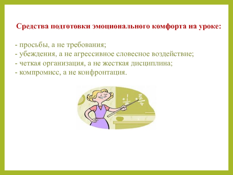 Слайд 10Средства подготовки эмоционального комфорта на уроке: