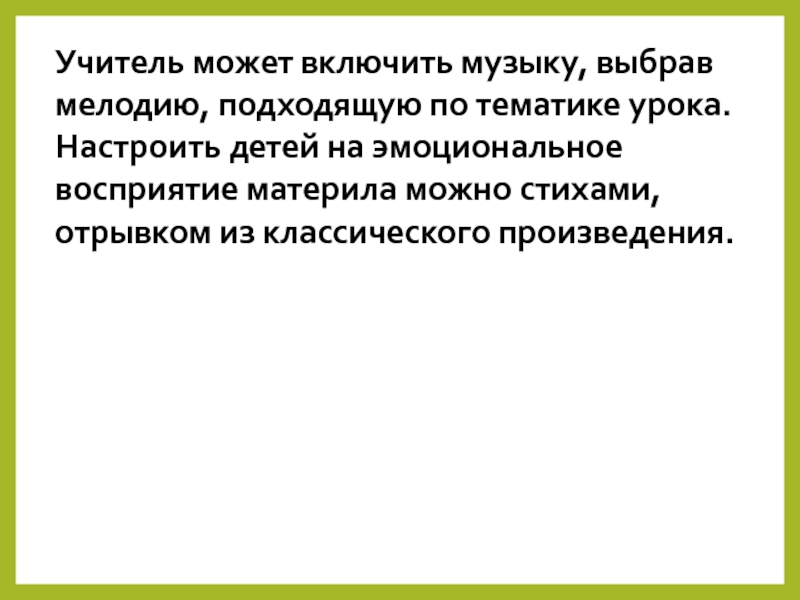 Слайд 22Учитель может включить музыку, выбрав мелодию, подходящую по тематике урока. Настроить