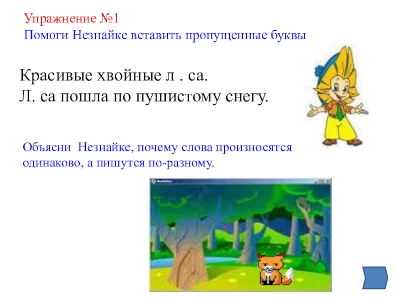 Объясни Незнайке, почему слова произносятся одинаково, а пишутся по-разному.