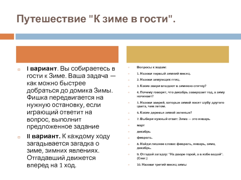1. Назови первый зимний месяц.