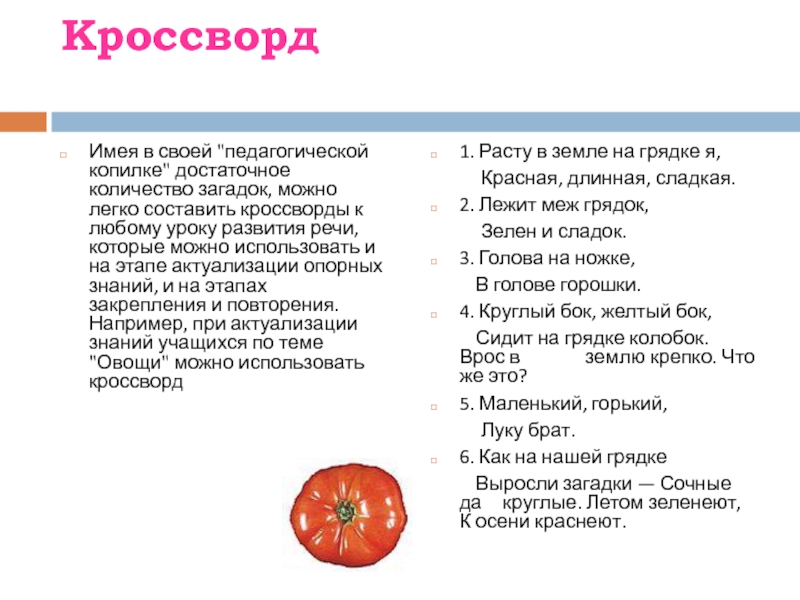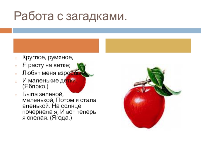 Выросли загадки — Сочные да круглые. Летом зеленеют, К осени краснеют.