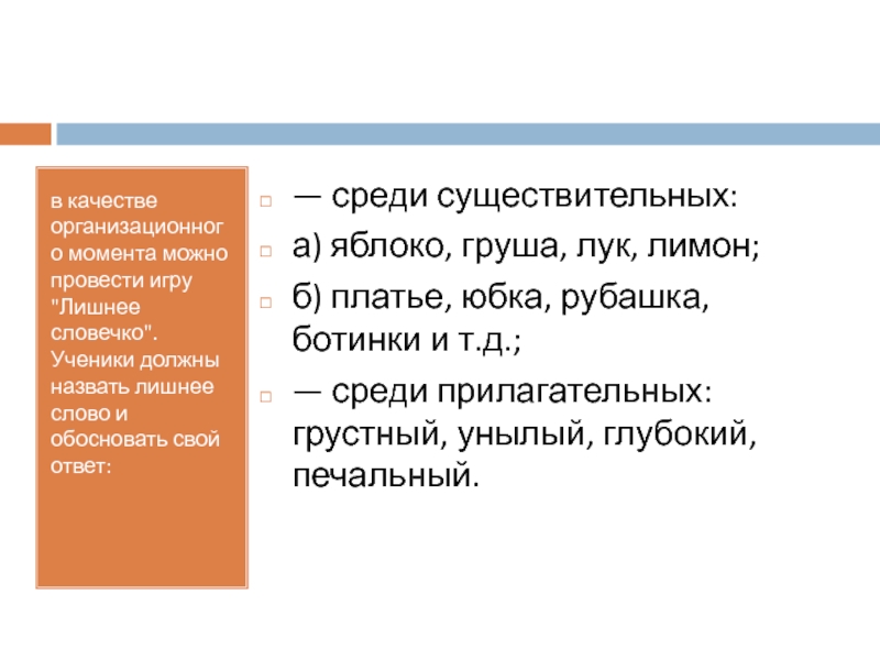 а) яблоко, груша, лук, лимон;