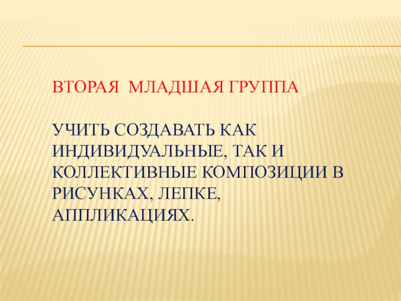 Слайд 8Вторая младшая группа Учить создавать как индивидуальные, так и коллективные композиции в