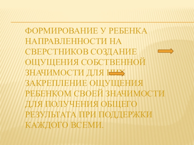 Слайд 3 Формирование у ребенка направленности на сверстников создание ощущения собственной значимости для