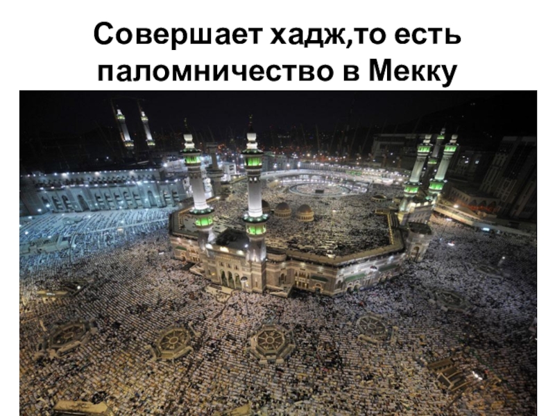 Слайд 6Совершает хадж,то есть паломничество в Мекку