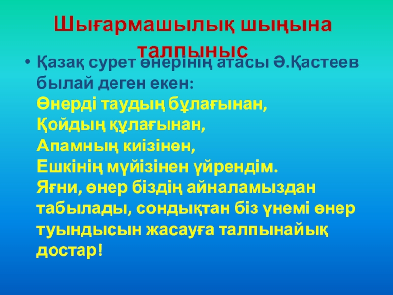 Қазақ сурет өнерінің атасы Ә.Қастеев былай деген екен: