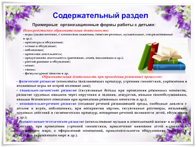 2.2. Описание вариативных форм, способов, методов и средств реализации Программы: особенности образовательной деятельности разных видов и культурных практик