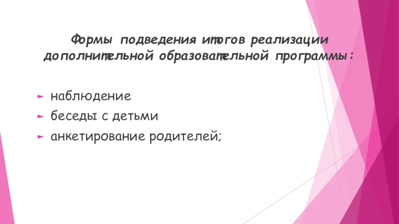 Слайд 13Формы подведения итогов реализации дополнительной образовательной программы:
