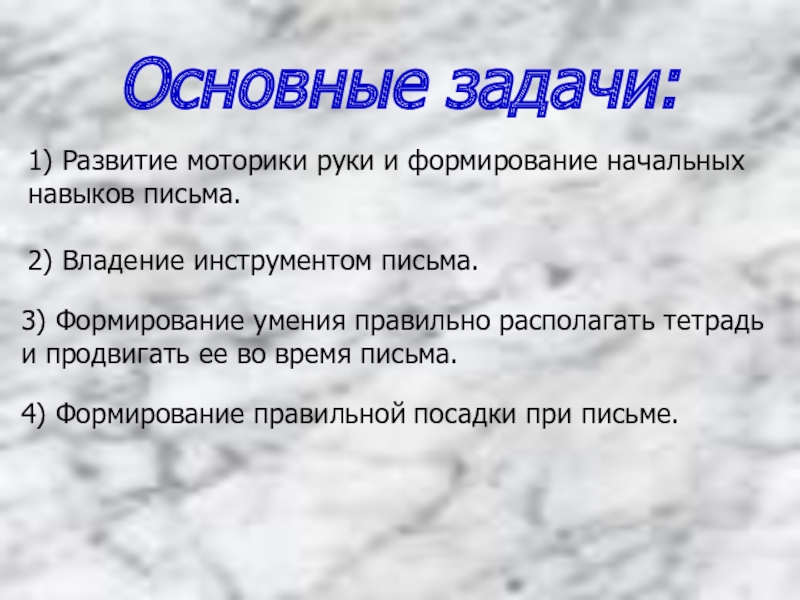 3) Формирование умения правильно располагать тетрадь и продвигать ее во время письма.