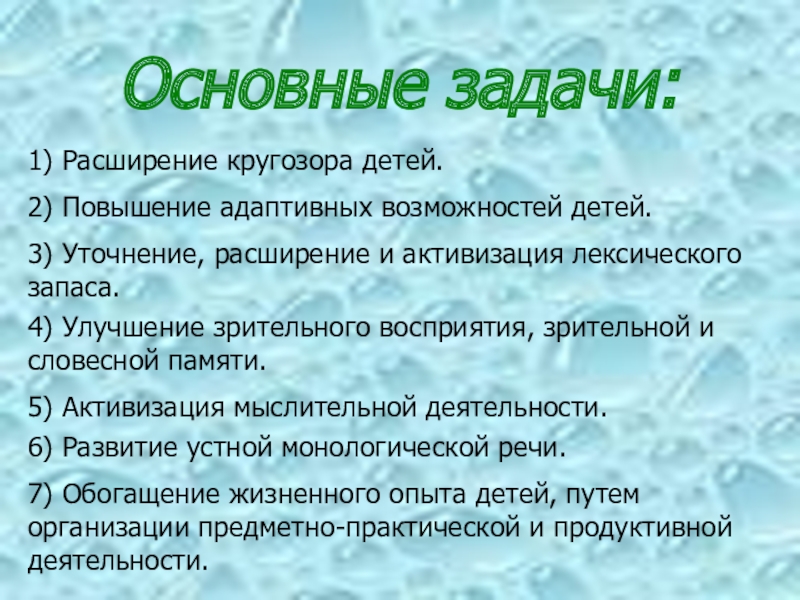 7) Обогащение жизненного опыта детей, путем организации предметно-практической и продуктивной деятельности.