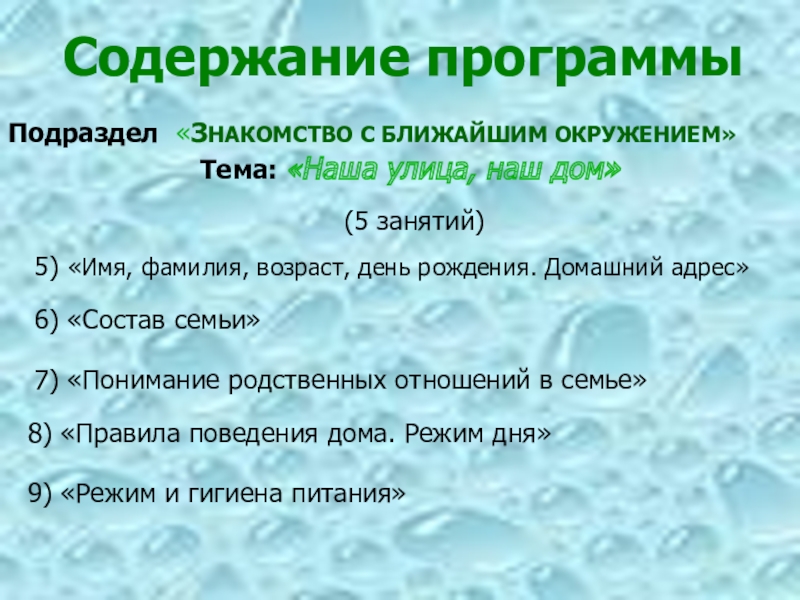 5) «Имя, фамилия, возраст, день рождения. Домашний адрес»