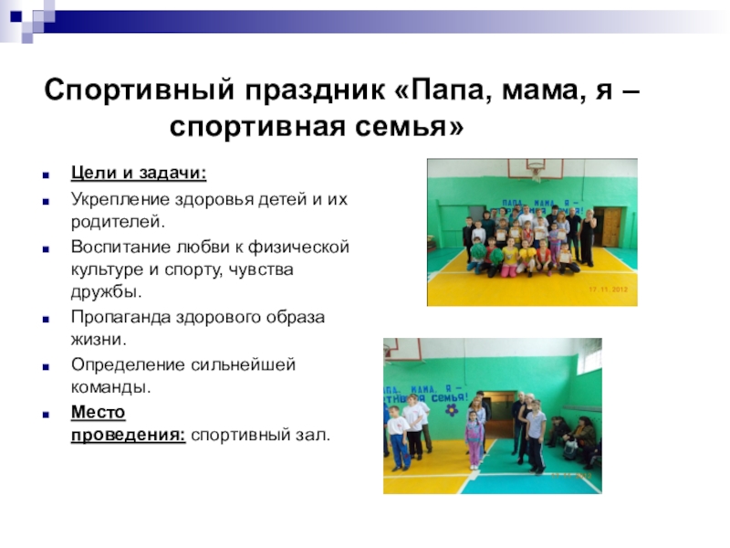 Место проведения: спортивный зал.