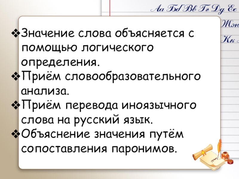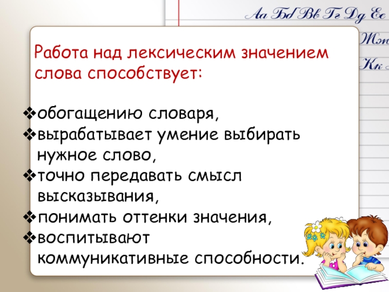 Работа над лексическим значением слова способствует: