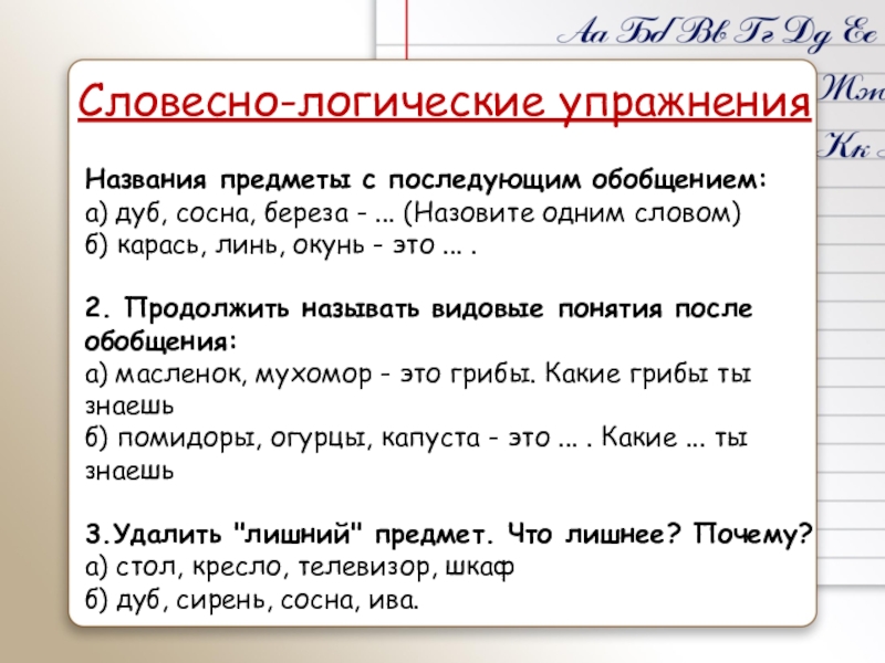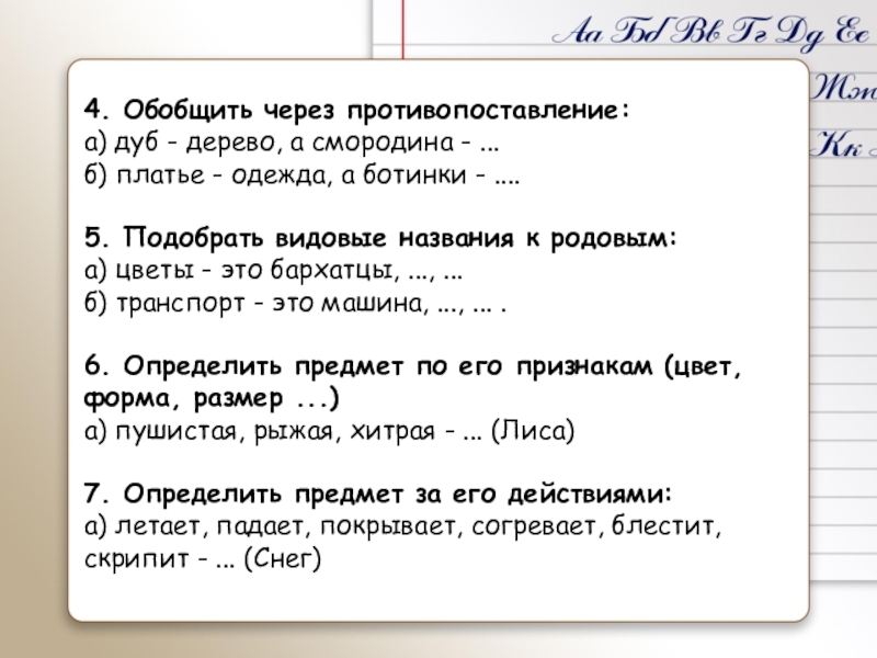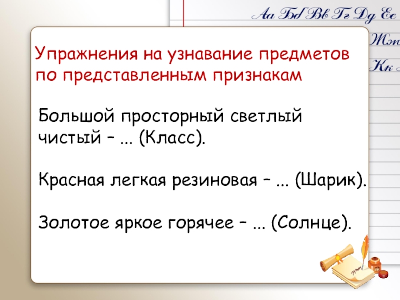Упражнения на узнавание предметов по представленным признакам