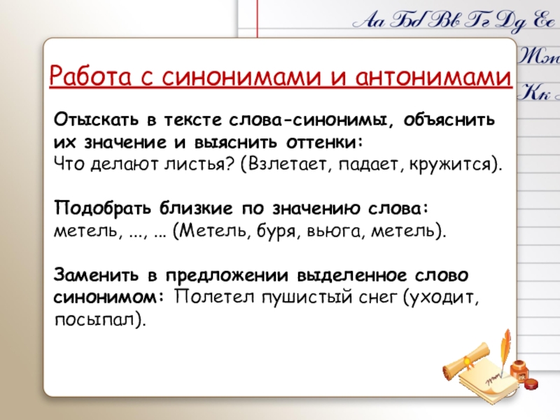 Работа с синонимами и антонимами