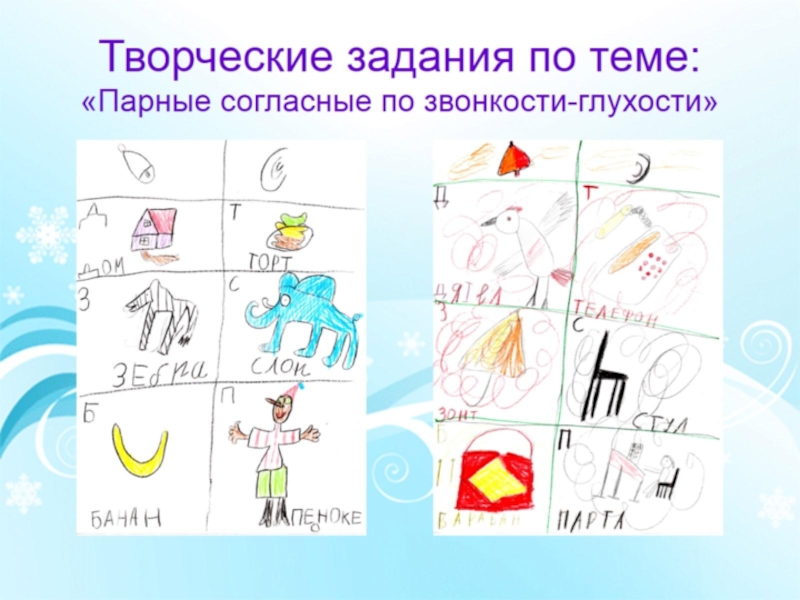 Творческие задания по теме: «Парные согласные по звонкости-глухости»