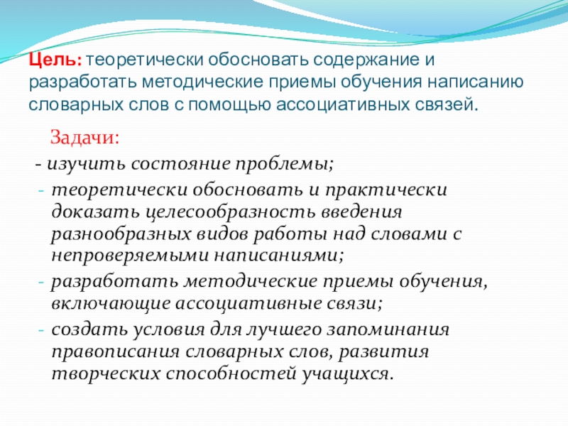 теоретически обосновать и практически доказать целесообразность введения разнообразных видов работы над словами с непроверяемыми написаниями;