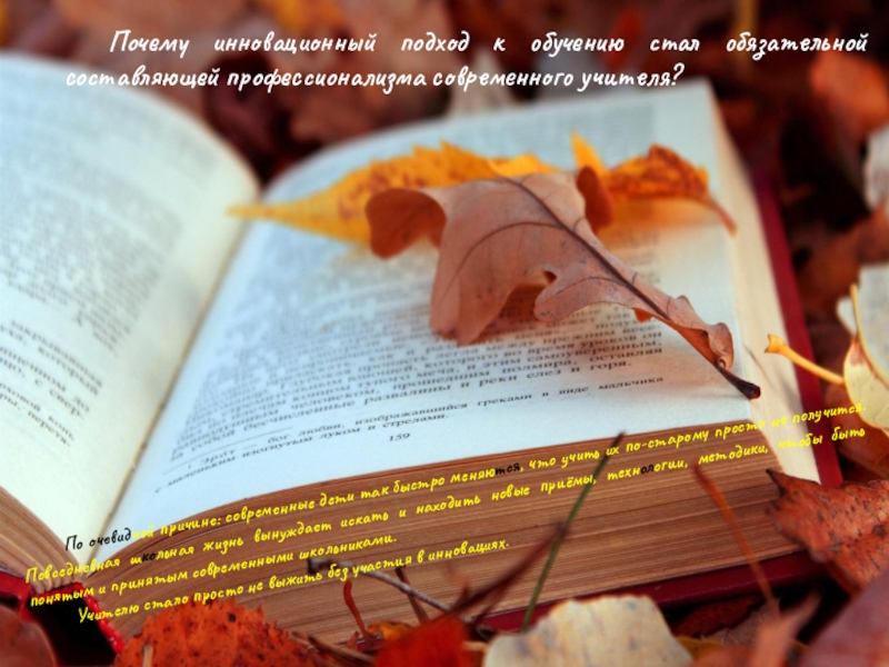 Слайд 13Почему инновационный подход к обучению стал обязательной составляющей профессионализма современного учителя?