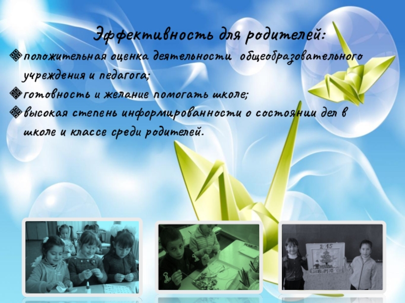 высокая степень информированности о состоянии дел в школе и классе среди родителей.