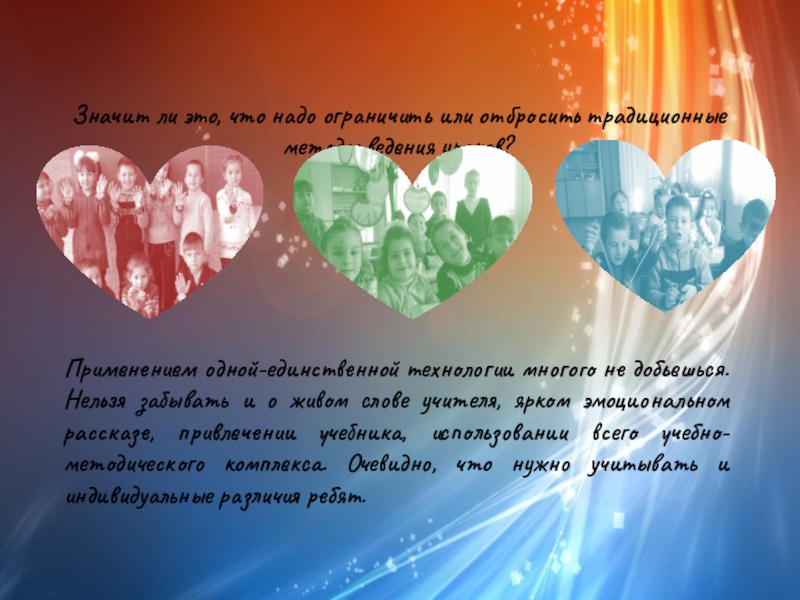 Слайд 16 Значит ли это, что надо ограничить или отбросить традиционные методы