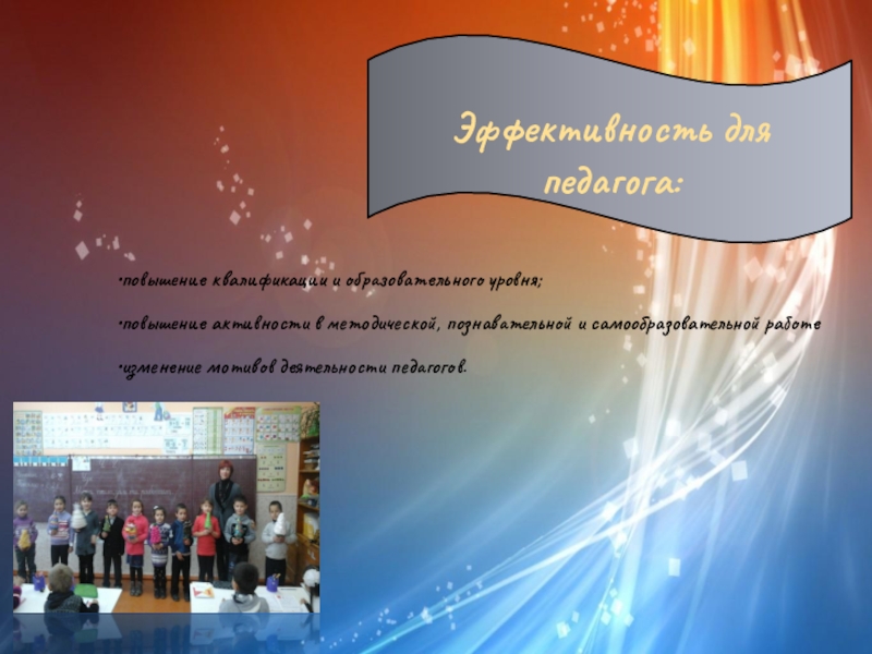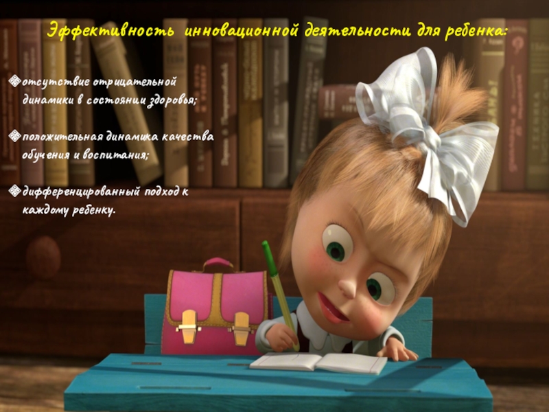 Слайд 20Эффективность инновационной деятельности для ребенка: