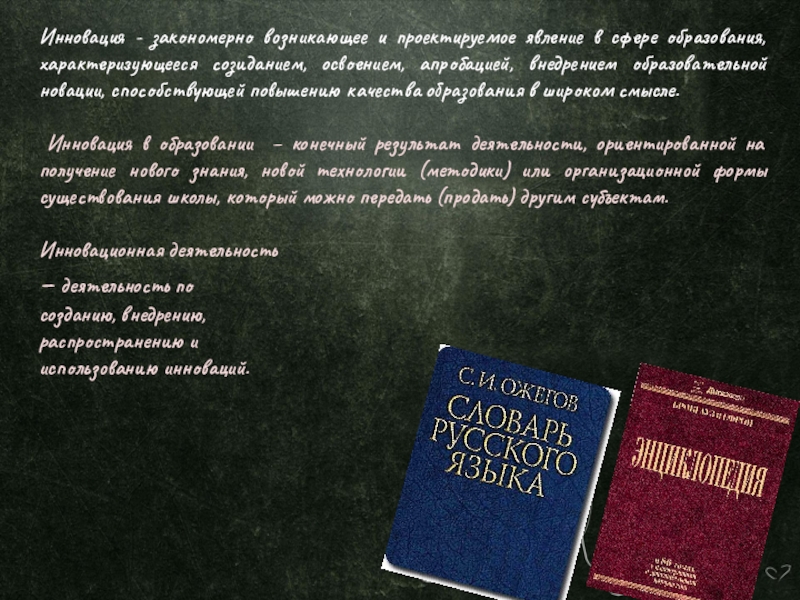 Слайд 7Инновация - закономерно возникающее и проектируемое явление в сфере образования, характеризующееся