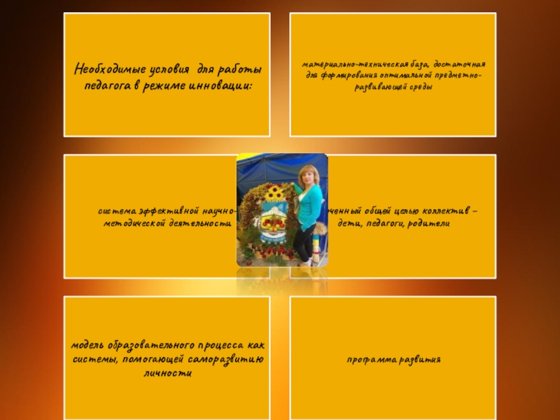 Значит инновация - это некий умственный потенциал неспокойных, жаждущих творчества в педагогике людей; во-вторых - это сильнейшая энергетика, запустившая, наконец, инновационную машину в действие.