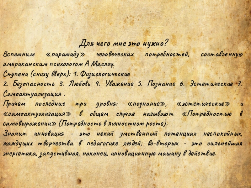 Вспомним «пирамиду» человеческих потребностей, составленную американским психологом