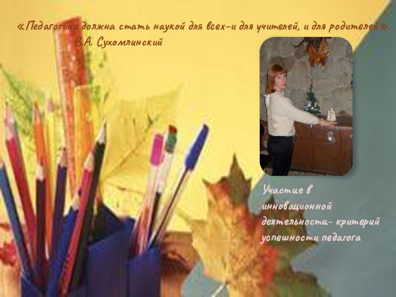 Слайд 2«Педагогика должна стать наукой для всех–и для учителей, и для родителей».