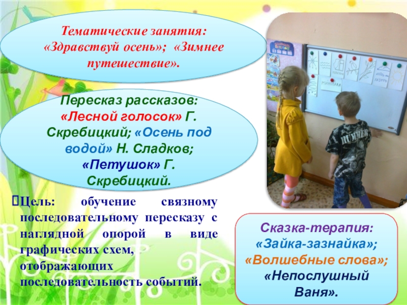Тематические занятия: «Здравствуй осень»; «Зимнее путешествие».