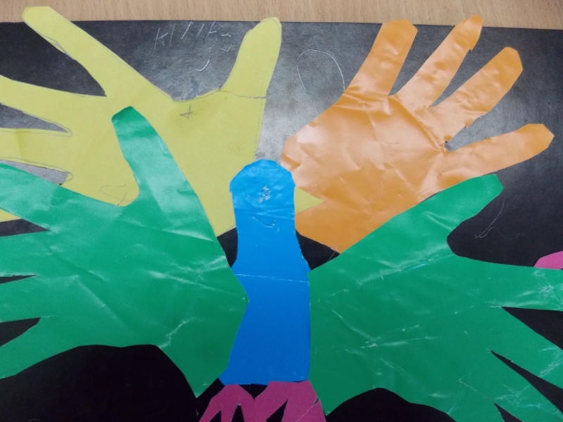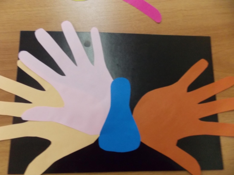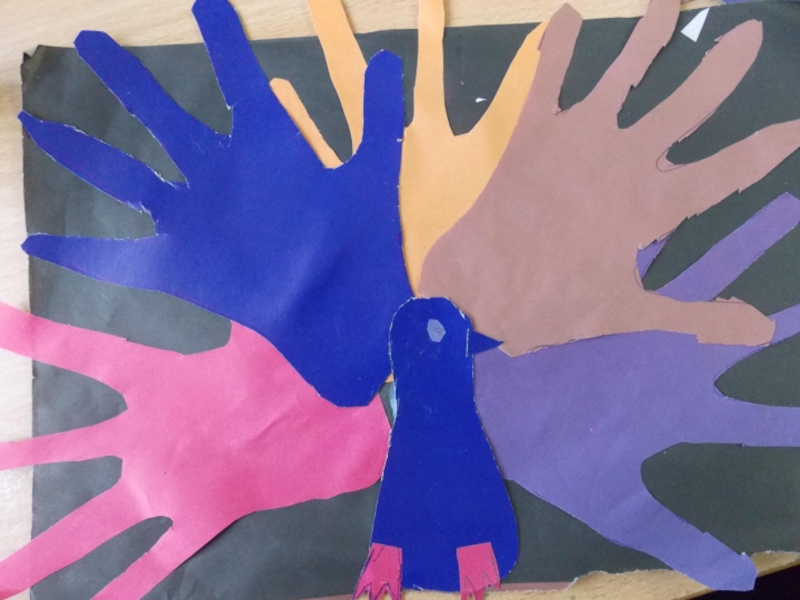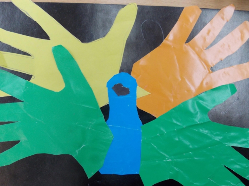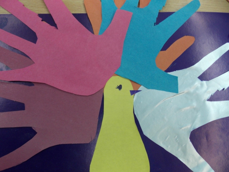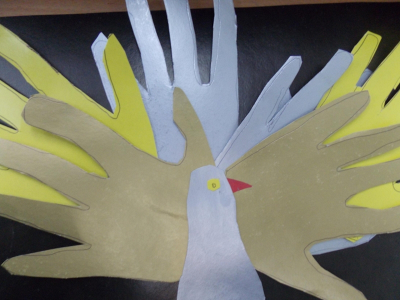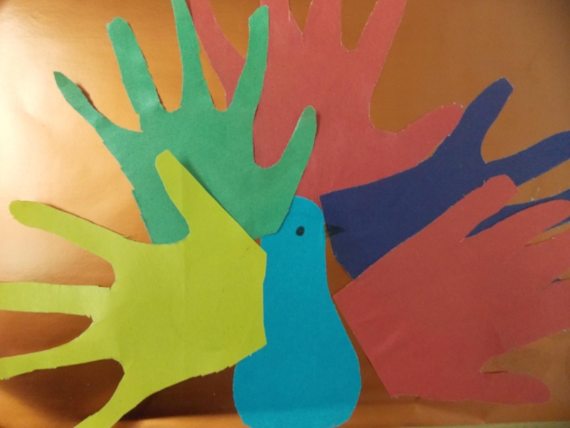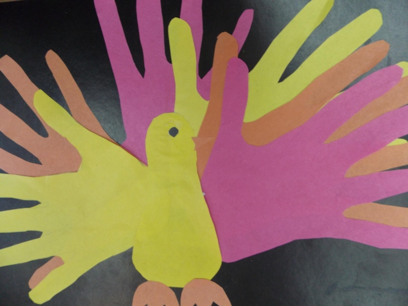 Нарисуйте глазик, клюв. Вырежьте при помощи ножниц. Оформите работу.