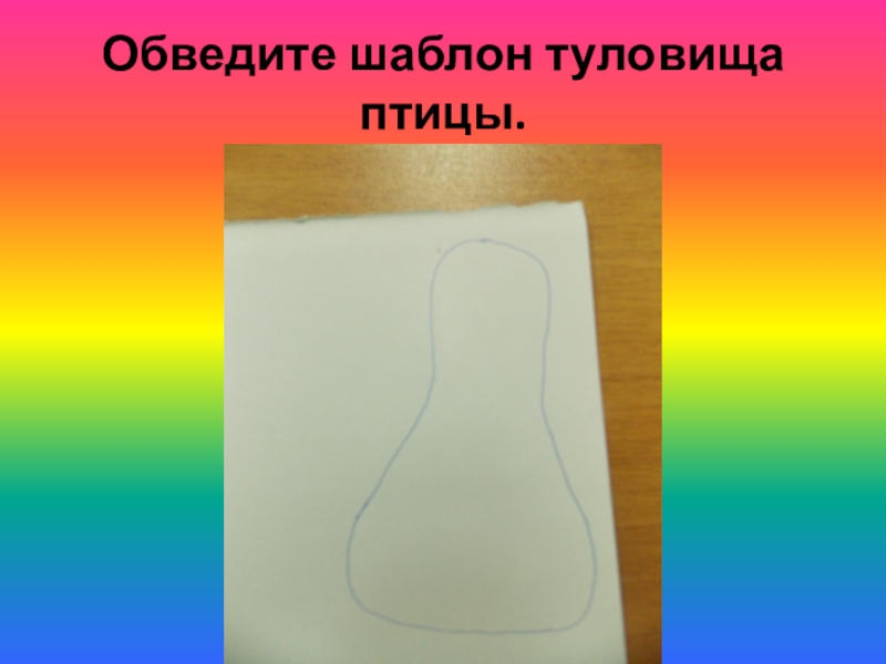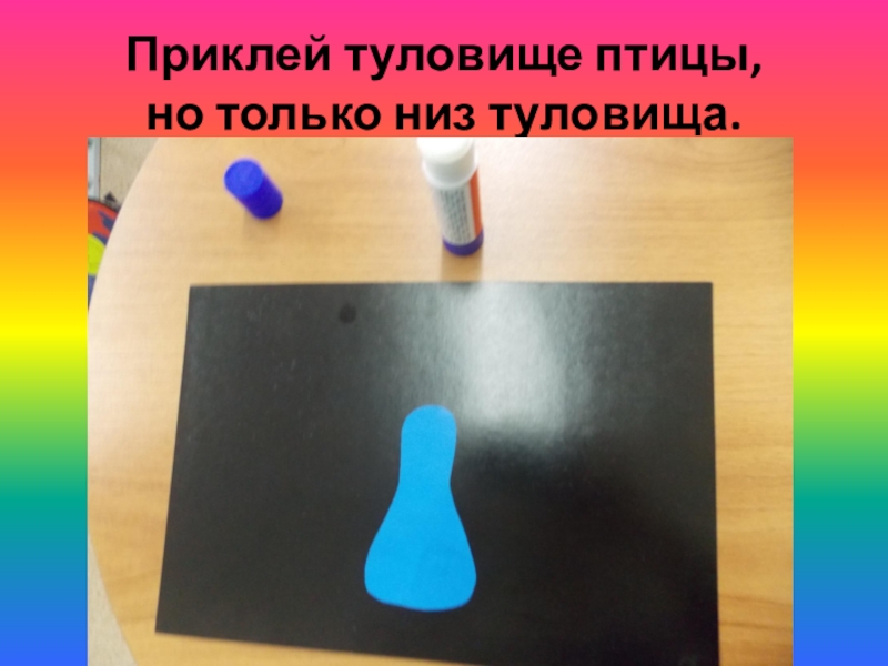 Слайд 8Приклей туловище птицы, но только низ туловища.