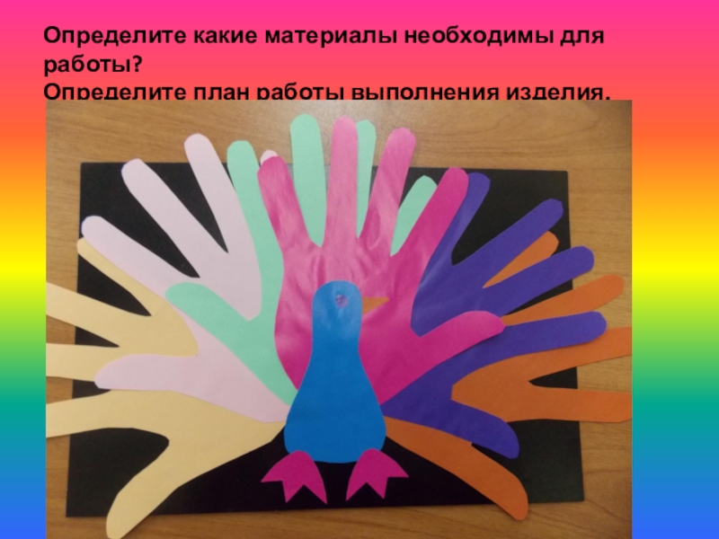 Слайд 2Определите какие материалы необходимы для работы? Определите план работы выполнения изделия.