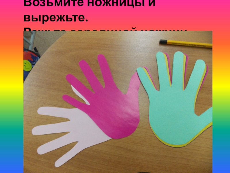 Слайд 10Возьмите ножницы и вырежьте. Режьте серединой ножниц.
