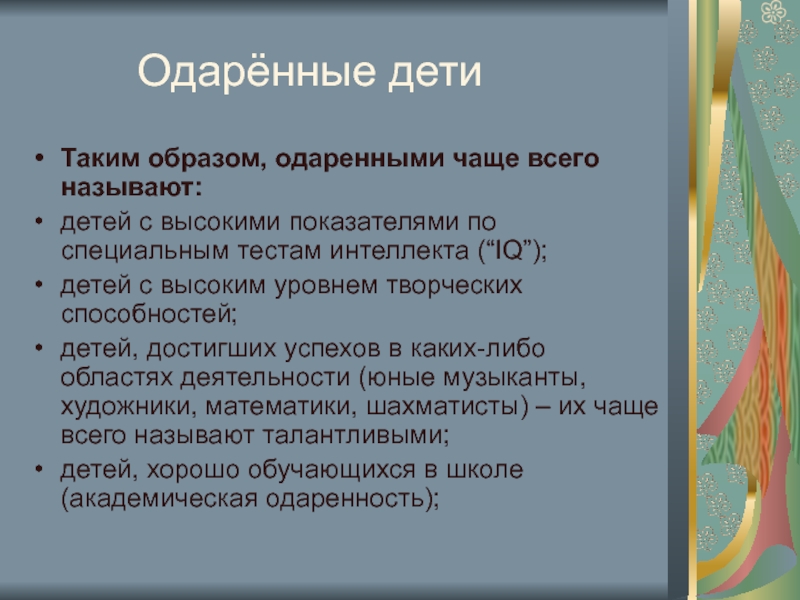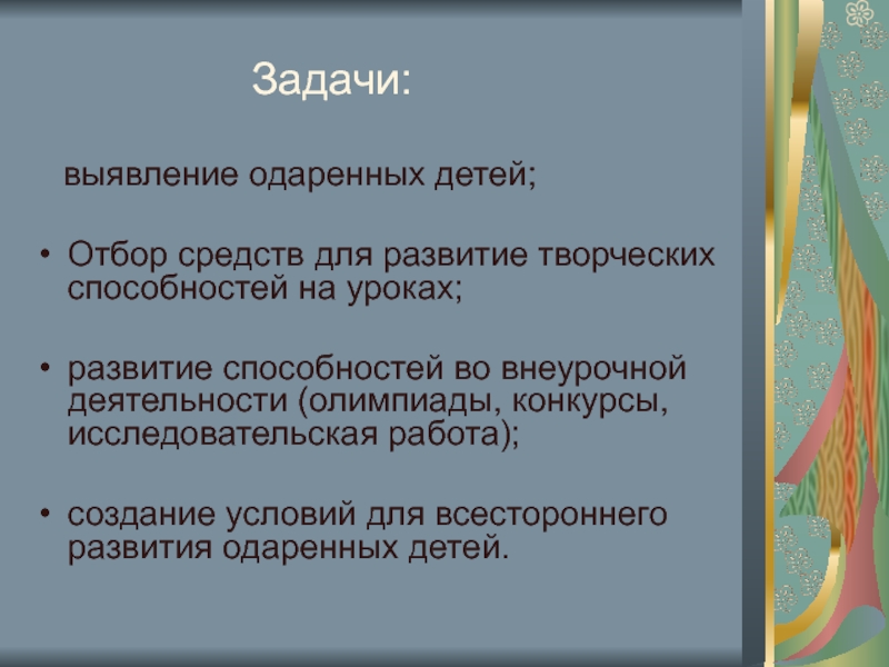 выявление одаренных детей и организация системной работы с ними.
