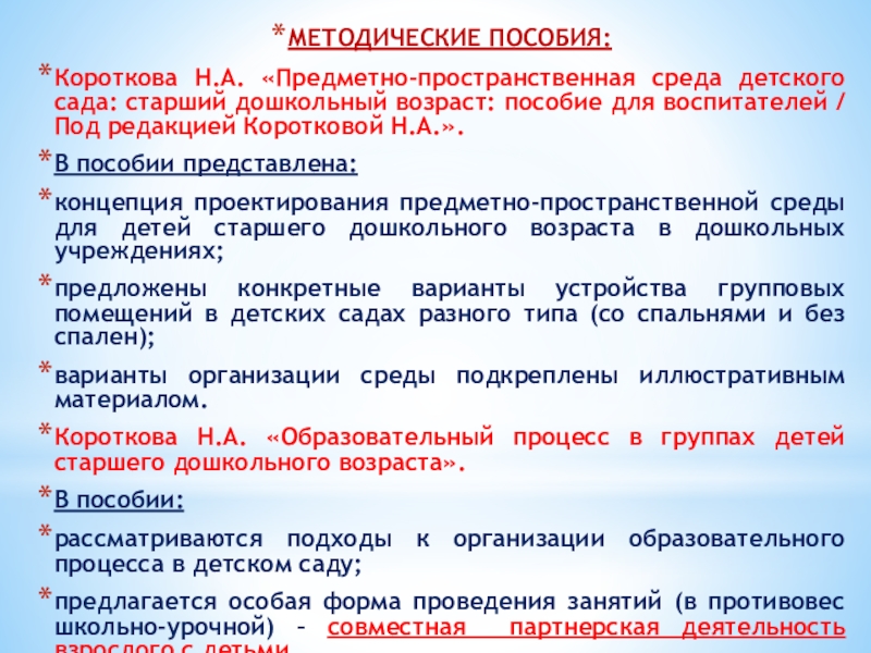Короткова Н.А. «Предметно-пространственная среда детского сада: старший дошкольный возраст: пособие