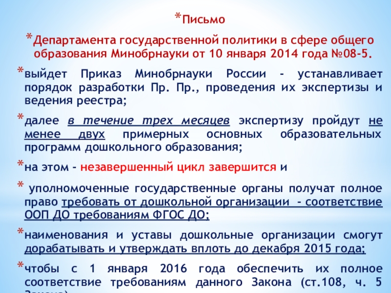 Департамента государственной политики в сфере общего образования Минобрнауки от 10 января