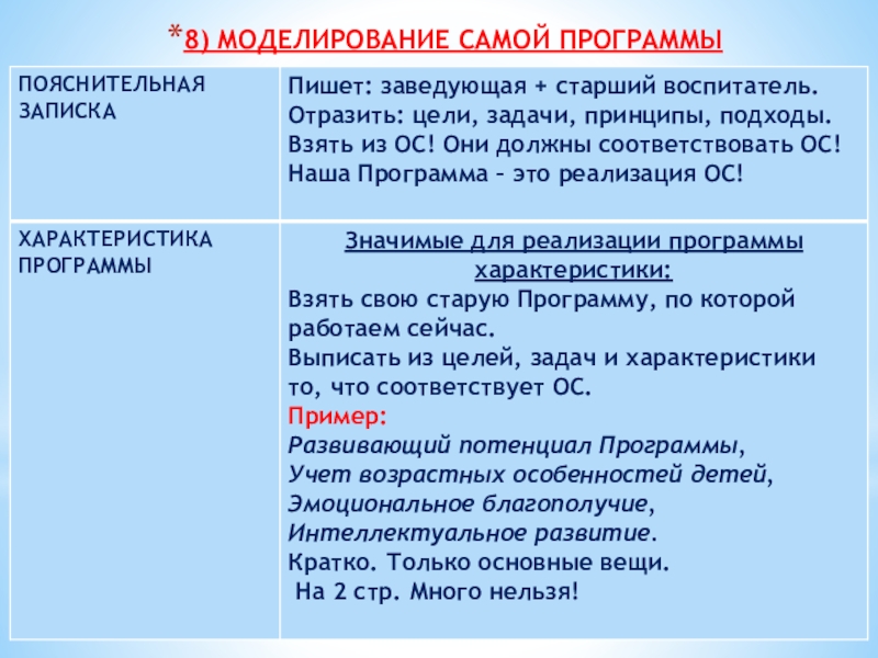 Слайд 147) Определить и прописать к каждой цели и задачам содержание и