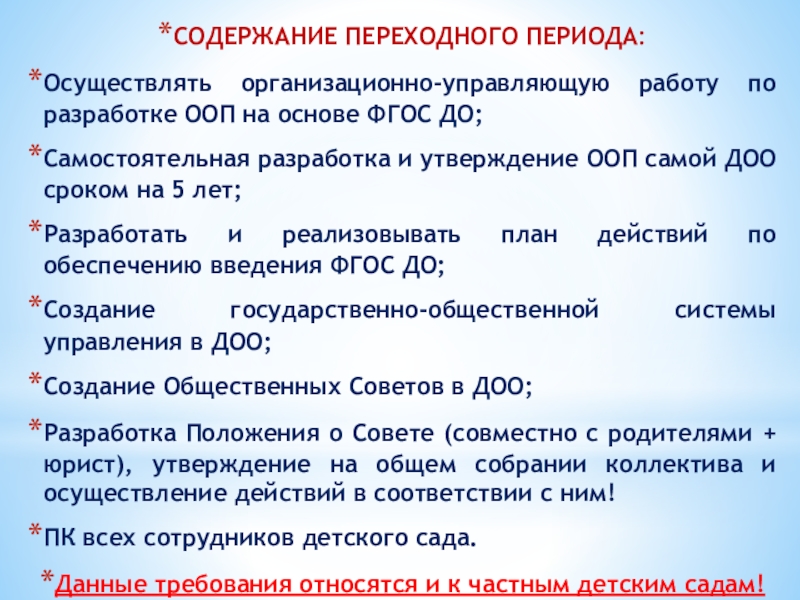 Слайд 21СОДЕРЖАНИЕ ПЕРЕХОДНОГО ПЕРИОДА: